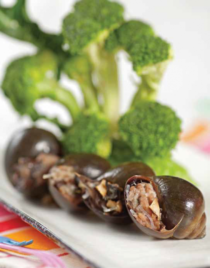 Cho một lượng nước vừa đủ vào nồi cơm điện, đặt xửng hấp vào nồi cơm điện, cho ốc nhồi vào hấp chín. Lấy ra đĩa, ăn kèm với bông cải luộc.