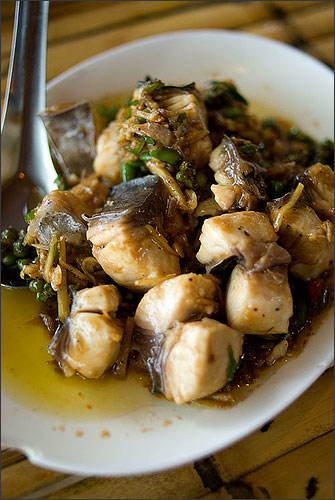Cá thu rửa sạch, lột bỏ xương, cắt khúc cỡ 2cm x 4cm (dày 2cm, dài 4cm) ướp bột nêm cho thấm, để khoảng 30 phút.