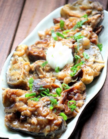 Cà tím kho nước dừa March 9, 2012 $ave Nguyên liệu: 3 quả cà tím loại vừa 1 bát nhỏ nước dừa 1 bát nhỏ bột mì 1 thìa súp dầu hào, 1 thìa súp xì dầu 2 cây nấm khô 1 củ tỏi,1 củ hành khô,1 củ hành tây Dầu ăn Các bước thực hiện: Bước 1 Cà tím rửa sạch, cắt tư rồi ngâm qua nước muối và xả sạch cho khỏi thâm. Lăn cà tím trên bột cho bột bám đều hai mặt cà. Làm nóng chảo với chút dầu ăn, cho cà tím vào rán vàng hai mặt. Bước 2 Hành khô và tỏi bóc vỏ, xắt lát rồi cho vào nồi phi vàng. Xắt nhỏ hành tây, cho vào nồi xào chung đến khi hành thây chuyển màu trong. Trong khi chờ hành chín thì ngâm nấm cho nở, sau đó rửa sạch và cắt tư. Xếp từng miếng cà tím vào nồi. Cho nấm, xì dầu, dầu hào và nước dừa vào, om nhỏ lửa cho đến khi xốt hơi sệt sệt là được. Nguon: duc.bkv