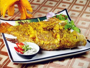 Cá điêu hồng nướng sả ớt miền Nam March 9, 2012 $ave Nguyên liệu: 1 con cá điêu hồng (khoảng 1,2kg) 1 thìa súp tỏi băm 2 thìa cà phê ớt băm 1 thìa súp hạt nêm 1 thìa cà phê muối 1 thìa súp nước mắm chấm 4 thìa súp dầu ăn 5 nhánh sả đập dập Giấy bạc để gói Các bước thực hiện: Bước 1 Cá điêu hồng làm sạch ruột, đánh sạch vảy, để nguyên đuôi và vây, rửa muối hạt cho sạch nhớt. Dùng dao khứa 3 đường xéo lên 2 bên thân cá. Cho tỏi băm, ớt băm, hạt nêm Knorr, muối, nước mắm chấm Knorr, dầu ăn vào khay trộn đều. Xát thật đều hỗn hợp gia vị vừa trộn lên thân cá, để khoảng 5 phút cho ngấm gia vị. Bước 2 Trải giấy bạc ra, xếp sả đập dập lên trên, đặt cá đã ướp lên lớp sả, gói giấy bạc lại thật kỹ, tránh bị thủng. Nếu không, khi nướng hơi nóng sẽ thoát ra ngoài, cá sẽ lâu chín và chín không đều. Đặt cá gói giấy bạc lên bếp than (Lưu ý: Khi nướng, để mặt sả tiếp xúc với lửa để hơi nóng từ sả bốc lên, cá sẽ chín và thấm mùi thơm của sả). Trong lúc nướng, thấy giấy bạc phồng lên, hạ lửa nhỏ, tránh để giấy bạc bị rách làm thoát hơi ra ngoài. Hạ lửa nhỏ, nướng cá thêm 5 phút nữa là được. (Theo SSM)