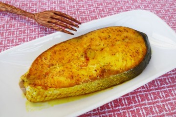 Cá hồi nướng nghệ June 12, 2012 $ave Nguyên liệu: Cá hồi cắt khoanh hoặc phi lê. Muối, tiêu, dầu ô-liu (loại nhẹ dùng để xào nướng), bột nghệ, nước cốt chanh Các bước thực hiện: Bước 1 Cá hồi ướp với muối, tiêu cho đậm đà, thêm chút bột nghệ và dầu ô liu, xoa đều cả hai mặt miếng cá rồi để khoảng 1 tiếng cho thấm. Tiếp theo vắt một ít nước cốt chanh xoa đều lên miếng cá rồi cho lên bếp than nướng khoảng 15-20 phút cho cá chín vàng đều là được. Bước 2 Nếu nhà có lò nướng thì các bạn cho cá lên khay nướng có lót giấy bạc và phết một lớp dầu ăn mỏng cho cá khỏi dính rồi cho vào nướng nhiệt độ 200 độ C trong khoảng 15- 20 phút (tùy theo miếng cá to hay nhỏ – trong khi nướng không cần lật cá). Vì cá hồi mau chín nên các bạn chú ý không nướng lâu cá sẽ bị khô mất ngon. Yêu cầu thành phẩm là cá vừa chín tới, có màu vàng đẹp mắt, gia vị thấm đều đậm đà vừa ăn, miếng cá ngọt béo, dùng với cơm nóng làm món ăn mặn. Nguồn từ trang: ngoisao