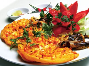 Món này ăn kèm với xà lách, cà chua và muối ớt