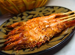 Xiên que tre thẳng từ đuôi tôm đến đầu