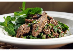 Trộn lẫn các nguyên liệu còn lại trong phần salad, rưới lên thịt bò đã thái lát và trộn đều là xong. Nếu không có lò nướng trực tiếp bạn có thể dùng chảo hoặc nướng trong lò nướng thông thường với nhiệt độ khoảng 180ºC trong 10 – 15 phút.