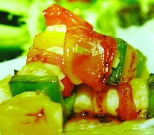 – Cho sò điệp, ớt xanh, cà chua vào ướp