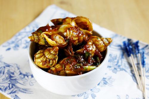 – Cho ốc vào đun cùng, thêm hai thìa nhỏ đường, nửa thìa nhỏ muối, một ít ớt bột, một thìa nhỏ nước mắm, đun sôi để gia vị thấm vào ốc. |