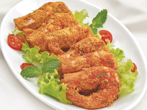 – Tẩm đều tôm với 1 gói bột tẩm khô chiên giòn Aji Quick vị bơ, chiên chín vàng, vớt ra để ráo dầu.
