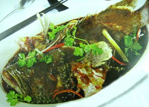 50g gừng, ¼ lít nước dùng cá, 30g đường, 100ml tương đen, 100ml tương đậu nành, 20g bột bắp, 20g tỏi phi, dầu chiên.