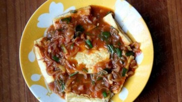 Khi ăn bạn bày đậu lên đĩa, rưới nước xốt lên đậu còn nóng giòn và ăn nóng với cơm. Món ăn dù thật đơn giản nhưng rất ngon miệng và nhẹ nhàng.