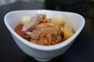 Gà nấu pate tiêu xanh February 20, 2012 $ave Nguyên liệu: 1 đùi gà 1 ức gà 2 miếng pa-tê 2 củ cà rốt xắt vát 5 củ khoai tây bé Dừa tươi : 1 trái Tương cà : 1 muỗng canh Hành tây: 1 củ xắt múi cau Gia vị: muối, tiêu, bột nêm, bột ngọt Các bước thực hiện: Bước 1 Gà rửa sạch, chặt miếng vừa ăn. Cho dầu vào chảo lên phi hành vàng, cho tương cà, 1 miếng pa-tê vào xào chung với nhau, đổ chút xíu nước cho sền sệt. Bỏ gà vào xào chung với hỗn hợp, sau đó chế nước dừa vào sâm sấp mặt gà (không có nước dừa xài nước trắng vẫn ngon). Bước 2 Cho cà rốt khoai tây vào và để lửa vừa. Khi nào thấy mọi thứ đều chín và chuẩn bị ăn lấy miếng pa-tê thứ 2 ra và xắn 1/2 pa-tê cho vào nấu sôi và nêm lại cho vừa ăn. Khi ăn múc ra dĩa, tô và cho thêm 1/2 pa-tê còn lại của miếng thứ 2 lên mặt tô, dĩa, bỏ ngò, hành lá trang trí tùy thích. Nguon: Liên ròm