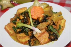 – Hành hoa, hành củ khô, tía tô, lá lốt, mẻ, nghệ, hạt nêm, nước mắm, chút đường.