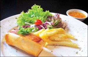 Mực làm sạch, cắt làm ba miếng vừa ăn. Khoai tây gọt vỏ, cắt miếng để chiên. Rau xà lách, cà chua rửa sạch để ráo nước.