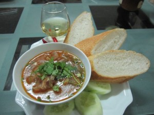 Trời mưa mưa lành lạnh thế này ăn thịt bò sốt vang ngon thật. Có thể ăn với bánh mì, hoặc bánh phở. Nấu sốt vang ăn với phở sẽ thêm vị quế và hồi.