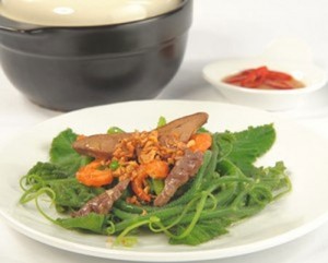 – Đun nóng chảo với 1 muỗng canh dầu ăn, phi thơm tỏi. Cho phần mề, gan gà và tôm khô vào xào săn, chín. Sau đó cho tiếp phần đọt bí vào và đảo nhanh tay, nêm thêm 1 muỗng canh nước tương cho vừa ăn. Bày ra đĩa, dùng kèm cơm trắng.