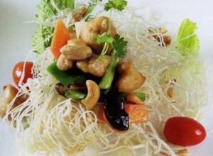 Bún tàu có thể chiên phồng trên dầu cho nở, tạo thành tổ chim, cho ra đĩa, đặt đồ xào lên, trang trí với ngò rí, cải xanh, boa-rô.