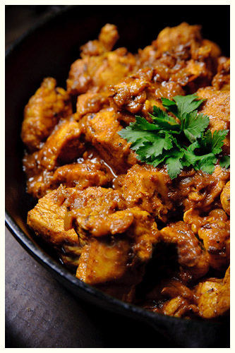 – Cho ớt, bột nghệ và muối vào chảo. Tiếp tục cho đường và đổ sữa chua vào. Khuấy đều để gia vị được trộn hoàn toàn.