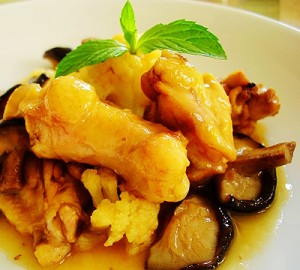 Gà chặt miếng vừa ăn. Nấm hương ngâm nở, rửa sạch, thái mỗi cái làm đôi