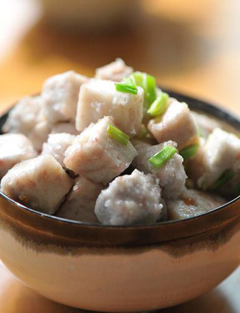 Khoai môn gọt vỏ cắt khối vuông khoảng 1 cm