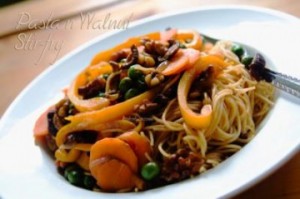 - 3/4 cup quả óc chó, để nguyên hoặc cắt đôi. Làm chín quả óc chó bằng cách cho vào chảo ít dầu ăn, cho quả óc chó vào đảo đến khi tất cả chuyển màu nâu nâu sẫm là được. (khoảng2-3 phút)