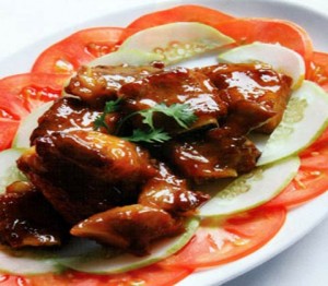 – Cho nước hơi xăm xắp, nêm thêm một ít nước mắm, xì dầu, đường, giấm đỏ, nấu riu riu cho đến khi sườn mềm, nước cũng còn một ít. Nếm thấy có vị chua, mặn, ngọt là được.