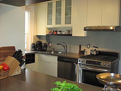 Nhưng các căn hộ chung cư thì hay đặt phần bếp gần cửa ra vào, tuy có lợi thế là dành diện tích thông thoáng chiếu sáng ngoài ban công, cửa sổ cho phòng khách, phòng ngủ, nhưng đồng thời cũng bộc lộ nhược điểm là vừa bước chân vào nhà đã gặp ngay bếp, và khả năng thông thoáng, lấy sáng cho khu vực này thường bị giảm sút.